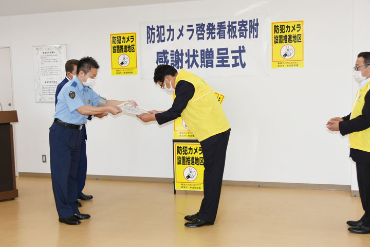 防犯カメラ啓発看板寄附感謝状贈呈式