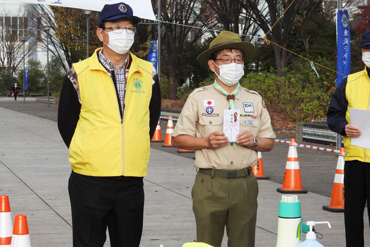 また、東海市スカウト連絡会へ1年間の活動費に対して、100,000円の助成金を贈呈しました。
