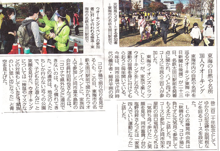 東海市内の自然や名所を巡るウォーキング東海を名鉄太田川駅前発着で開催し、市民300人が参加しまし た。