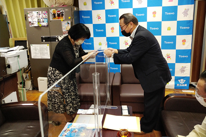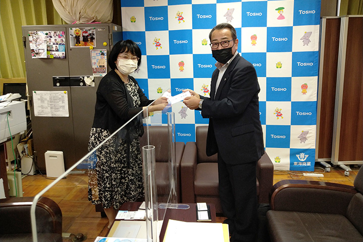 日 時 2021年7月14日(水) 16:30 場 所 東海商業高等学校 東海商業高校ボランティアへの支援のため、助成金を贈呈しています。 本年度も11月23日「ウォーキング東海」、12月10日「交通立哨」に 例年、ご協力いただいています。 支援金 50,000円