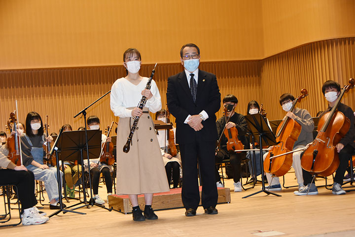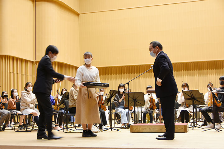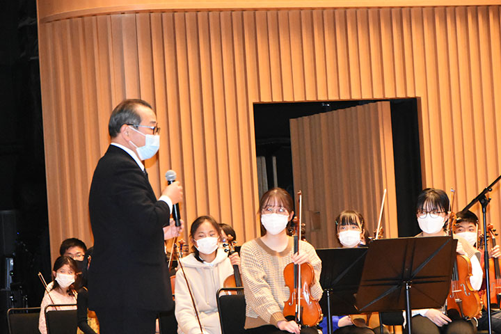 場 所 東海市芸術劇場 「子どもオーケストラ」へ楽器を贈呈しました。 イングリッシュホルン 1台 (1,070,000相当) 会長L坂野友昭 幹事L沼澤恒一郎 幹事L大場秀昭 カメラ:L加古幹一 事務局 出席 楽器贈呈、「子どもオーケストラ」練習風景