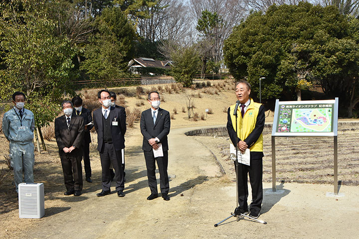 同時にこの場所での案内看板も寄付しました。毎年きれいな花が咲き、市民の憩いの場所になっていただ