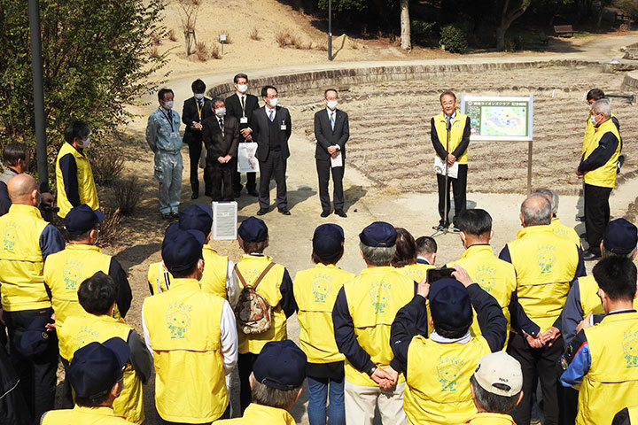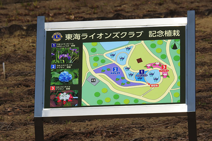 場 所 大池公園「花しょうぶ園」 案内板及びあじさい124株市へ寄付