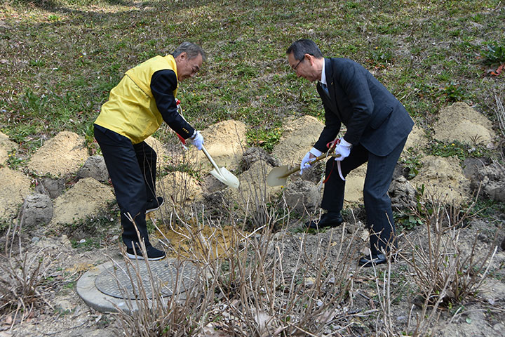 東海市大池公園内花しょうぶ園に結成50周年を記念してあじさいを植栽しました。