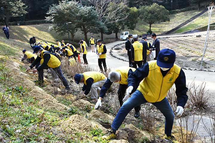 にはきれいな花を咲かせおり、今回はあじさい124本を寄付し、市長始め市職員のかた、当クラブメン